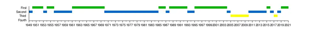 The club again won the second division several years 1953, 1960, 1984, 1987, 1994.