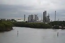 The Clyde Refinery was built by John Fell and Company Pty Ltd in 1925.[1] It was constructed largely from plant and materials relocated from a shale oil refinery the company had operated at Newnes and old shale retorts at Torbane, both north of Lithgow.[2][3] The refinery was purchased by Shell in 1928, who would continue to operate the refinery throughout the rest of its existence. The refinery was located in Clyde where the Parramatta River and the Duck River converge, 16 kilometres (9.9 mi) west of the Sydney CBD.[4]