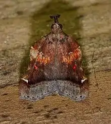Clydonopteron sacculana, the trumpet vine moth, is a species of snout moth. It was described by Louis Augustin Guillaume Bosc in 1800.[1] It is found in the West Indies, Brazil and Argentina.[2] In North America, it is found from Washington, DC to Florida, west to Missouri and Texas.