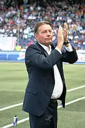 In their run in the 1998–99 UEFA Cup, Willem II managed to knock out Dinamo Tbilisi in the first round 6–0 on aggregate, but lost to Real Betis in the second round.[2] The club had a weak start to their domestic season, and held an 11th place in the league table at the winter break. A strong second half of the season, however, saw them finishing in second place after beating eventual champions Feyenoord 4–1, and Ajax 3–1.[1] This meant that Willem II, a team better known for finishing in the bottom half of the Eredivisie, would be competing in the UEFA Champions League. The team, however, finished bottom of their 1999–2000 UEFA Champions League group stage, and after failing to achieve another European spot, Adriaanse resigned on 20 May 2000.[3]
