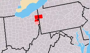 ![]() Mahoning, Shenango, and Tuscarawas Valleys in the Youngstown area of Ohio and Pennsylvania | |||