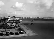 Construction of the Air Station was undertaken in 1936 with funds provided by the Federal Public Works Administration. The M.H. Golden Co. was the contractor. The area had to be dredged from the bay and filled and brought up to grade level. Long piles were driven in the soil at the building sites for stabilization. The contract called for one hangar with lean-to, a mess hall, a barracks building, two aprons, a runway to the field, and a small wooden seaplane ramp. During and prior to this time a Coast Guard Air Detachment was maintained on Lindbergh Field in one-half of a commercial hangar. This detachment was led by Elmer F. Stone after May 21, 1935. Stone is one of Coast Guard Aviation's most colorful figures.