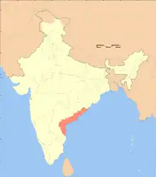 The Coastline of Andhra Pradesh is located on the southeast coast of Indian Peninsula, and forms a part of Northern Circars, with waters of Bay of Bengal. It has the second longest coastline with a length of 975 km (606 mi), next to Gujarat.[1][2] The coastal corridor consists of several ports, harbours, vast stretches of sandy beaches, wildlife and bird sanctuaries, fresh water lakes, estuaries etc.