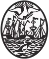 On November 29, 2012, the Buenos Aires City Legislature passed a bill that modified and restored the original format of the insignia. The new symbol is a refined version of the coat of arms approved on July 7, 1856 by the City Council of Buenos Aires which received final approval by Order of December 3, 1923. It is an oval with the image of the Río de la Plata, two ships symbolizing the two foundations of the City, and a white dove with its wings spread over the sky.[2][3][4][5]