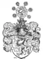 The arms in a heraldic console decorated with edelweiss, Hugo Gerard Ströhl, 1890
