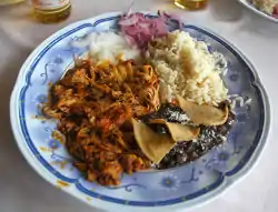 Cochinita pibil (also puerco pibil or cochinita con achiote) is a traditional Yucatec Mayan slow-roasted pork dish from the Yucatán Peninsula.[1] Preparation of traditional cochinita involves marinating the meat in strongly acidic citrus juice, adding annatto seed, which imparts a vivid burnt orange color, and roasting the meat in a píib while it is wrapped in banana leaf.