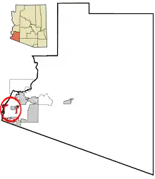 The Cocopah Indian Reservation is the reservation of the federally recognized Cocopah Indian Tribe (Cocopah: Xawitt Kwñchawaay) , which represents Cocopah peoples in the United States. As of the 2000 census a resident population of 1,025 persons, of whom 519 were solely of Native American heritage, lived on the 25.948 km2 (10.019 sq mi) Cocopah Indian Reservation, which is composed of three non-contiguous sections in Yuma County, Arizona, lying northwest, southwest and south of the city of Yuma, Arizona.[1] The larger section, bordering the Colorado River, lies west of the Yuma suburb of Somerton, while the other section lies just east of Somerton.