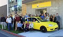 CODA's sole vehicle offering was the Coda all-electric sedan, a four-door, five passenger electric car powered by a battery pack that delivered a United States Environmental Protection Agency rated range of 88 mi (142 km), the longest among its class, although considerably less than the Tesla Roadster and Tesla Model S.[9] The electric car was released in March 2012,[10] and initially was available only in California.[11][12] After low initial sales of the Coda Car, Coda Automotive terminated 15% of its workforce,[13] and entered a period of financial difficulty.[14][15] By May 2013, Coda was seeking bankruptcy protection.[16] By May 2016, Exergonix, Inc. acquired all assets of the company.[3]