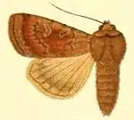 Coenophila subrosea, the rosy marsh moth, is a moth of the family Noctuidae. The species was first described by James Francis Stephens in 1829. It is found from southern Great Britain, Italy and France, through central Europe north to Scandinavia, east to Russia, from Siberia to the Amur region, Ussuri and Sakhalin, south to northern China, east to Korea and northern Japan.