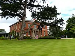 Cogshall Hall is a country house near the village of Comberbach, Cheshire, England. It was built in about 1830 for Peter Jackson.[1] A kitchen wing was added to the rear during the early 20th century. It is constructed in red-brown brick, and has a slate hipped roof. It is rectangular in plan, and has two storeys. Its architectural style is Georgian.[2] The entrance front has five bays and an Ionic portico.[1] There is a similar, smaller portico on the right side. The house is recorded in the National Heritage List for England as a designated Grade II* listed building.[2] The lodge to the hall was built at about the same time. It has a Tuscan porch with a pediment, and is listed at Grade II.[3] The architectural historian Nikolaus Pevsner refers to the lodge as being "ambitious".[4]