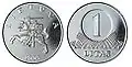 - 1 centas coin: diameter - 18.75 mm, thickness - 1.30 mm, weight - 0.83 g. The 1 centas coin has a square ornament with triangle tulips in each corner. In the center there is a symbol of the columns of Gediminas.