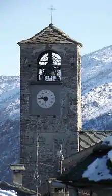 The local church was built from 1614 on the site of a previous one and it was renovated in 1922 to allow the transit of a new road. Its bell tower is the oldest of the Lanzo Valleys and was built at the end of the 11th century.[4]