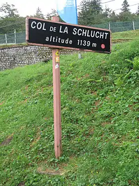The Col de la Schlucht (elevation 1,139 m (3,737 ft)) is a mountain pass in the Vosges Mountains of France. On the west side lies the historical region of Lorraine (Lothringen in German),[2] on the east side lies the historical region of Alsace (Elsass in German).[3]