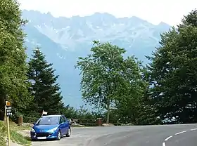 The climb can also be accessed from Aiguebelle (northeast) from where the route is 16.3 kilometres (10.1 mi) at an average of 5.3 percent, gaining 870 metres (2,850 ft). This route connects with that from La Corbière just after passing through Saint-Georges-des-Hurtières.[4]