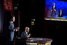 President Barack Obama guested during the show's final month, in a show taped from George Washington University in Washington, D.C.; Obama sat in Colbert's seat and presided over "The Wørd" segment.[77][78]