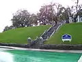 Cole's Hill rises steeply from the shore of Plymouth Bay, near Plymouth Rock, the traditional landing site of the Pilgrims in 1620. It is now bounded by Water, North, Carver, and Leyden Streets. The hill is landscaped with grassy areas, low shrubs, and some trees, and trails wind their way around the hill. A granite staircase rises from Water Street to the summit of the hill. A number of monuments and memorials are on the hill, most of which date to the tercentenary (300-year anniversary) celebration of the Pilgrim landing in 1920. These include a Cyrus Dallin statue of the Wampanoag sachem Massasoit (c. 1581–1661), whose support was critical to the Pilgrims' survival. At the southern end of the hill stands a granite sarcophagus erected by the General Society of Mayflower Descendants in 1920. It contains skeletal remains accidentally disinterred from the hill in the 18th and 19th centuries, which are believed to be those of Mayflower settlers buried here in the winter of 1620-21 when 52 out of 102 died. Two stone benches, one placed by the Pennsylvania Society of New England Women, the other by the Society of the Daughters of Colonial Wars, face seaward.[3]