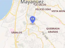 The current campus' main buildings are located at Quebrada Grande, Mayagüez, west of Puerto Rico.
