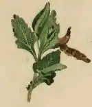 Sprig of Teucrium chamaedrys with a larval case attached to one of the leaves