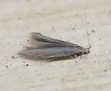 C. sylvaticella characteristics include a greyish-ochreous head and white antennae. The forewings are greyish-ochreous; costa somewhat paler or whitish-tinged; costal cilia posteriorly pale ochreous. The hindwings are grey.[3][4] Adults are on wing in May and June.[5]