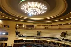 Between 1997 and 2001, there systematic changes to the buildings interiors, that included the substitution of the electrical systems, the construction of new washrooms on all floors, the substitution of water supply, security and fire protection systems, the repair of the roof, recuperation of the dressing rooms on five floors and the elaboration of a new aesthetic with the building.[2] Moving and scenic lighting equipment were upgraded, the heating network was recovered and improved, an electronic subtitling system (with simultaneous translation in two languages) and an electronic ticket office were installed.[2] The auditorium was completely rebuilt to improve the acoustics and the visibility of the spectators, while a warehouse was built under the auditorium.[2] A second orchestra pit and a new circus track were installed on a 13 metres (43 ft) hydraulic lifting plate.[2]