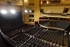 Located in the city of Porto, it is flanked by other buildings, implanted on land with an accentuated slope from east to west; it is addorsed to the Olímpia Cinema (in the west) and various four-storey residential/commercial buildings in the west.[2] Opposite coliseum is a modernist garage.[2] The main auditorium has a capacity for a standing audience of 4000 people and 3000 seated, that includes the 1st and 2nd stalls, the dress circle, the boxes, upper circle, reserved and general gallery.[3] There is also the smaller Ático Room, with capacity for 300 people, suitable for smaller performances, conferences and symposia.