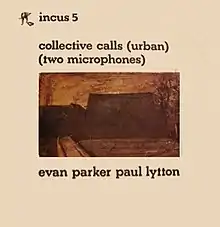 Collective Calls (Urban) (Two Microphones), subtitled "an improvised urban psychodrama in eight parts", is an album by saxophonist Evan Parker and drummer Paul Lytton. It was recorded in April 1972 at the Standard Essence Co, a small loft space in London, and was released later that year by Incus Records. The album was reissued on CD by Psi Records in 2002.[1][2][3]