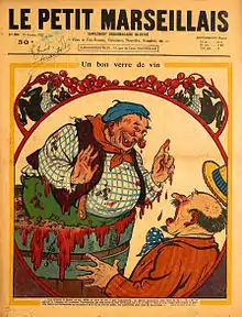 As an example of digital reproduction of the full work, since 2005 the Bibliothèque nationale de France (BnF) has been digitizing editions of daily and weekly periodicals that were published before 1943. Some of this has been through agreements with the publishers L’Ouest-Éclair and Le Monde diplomatique. Where the BnF does not have such an agreement, the BnF considers the newspaper to be a collective work that entered the public domain 70 years after publication.[16] Some of these digitized journals may contain contributions for which the individual author's rights have not expired. Thus the cover of the digitized La Baïonnette of 2 December 1915 has an illustration by the artist Albert Jarach, who died in 1962 and whose rights would not expire until 2033.[17]
