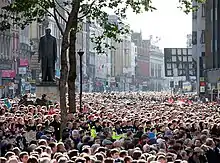 Bill Clinton, the President of the United States visited Dublin in December 1995 and gave speech in College Green to 80,000 people.[19] In May 2011, President Barack Obama gave a speech at College Green in front of 100,000. During the speech, he praised Ireland for its economic opportunities, and said he was proud of his Moneygall heritage.[20]