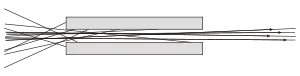 The figure to the right illustrates how a Söller collimator is used in neutron and X-ray machines. The upper panel shows a situation where a collimator is not used, while the lower panel introduces a collimator. In both panels the source of radiation is to the right, and the image is recorded on the gray plate at the left of the panels.
