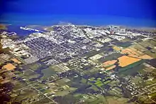 The area, which surrounds the town's downtown core[11] contains 260 properties[12] and several landmarks, including the Shipyards redevelopment on former site of Collingwood Shipbuilding, Collingwood Terminals grain elevator,[13][14] and the town hall.[15]