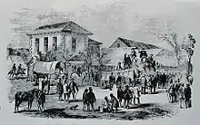 In 1823 Francis Farewell, formerly a lieutenant in the British navy, with other merchants of Cape Town, formed a company to trade with the natives of the south-east coast. In the brig Salisbury, commanded by James S. King, who had been a midshipman in the navy, Farewell visited Port Natal, St Lucia and Delagoa Bays. The voyage was not successful as a trading venture, but Farewell was so impressed with the possibilities of Natal both for trade and colonization that he resolved to establish himself at the port. He went on with ten companions, among them Henry Francis Fynn. All the rest save Farewell and Fynn speedily returned to the Cape, but the two who remained were joined by three sailors, John Cane, Henry Ogle and Thomas Holstead. Farewell, Fynn and the others went to the royal kraal of Shaka, and, having cured him of a wound and made him various presents, obtained a document, dated 7 August 1824, ceding to "F. G. Farewell & Company entire and full possession in perpetuity" of a tract of land including "the port or harbour of Natal". On the 27th of the same month, Farewell declared the territory he had acquired a British possession. In 1825 he was joined by King, who had meantime visited England and had obtained from the government a letter of recommendation to Lord Charles Somerset, governor of the Cape, granting King permission to settle at Natal. Farewell, King and Fynn made independent settlements at various parts of the bay.[2]