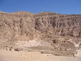Coloured Canyon (Arabic الوادي الملون) is a rock formation on Sinai peninsula. It is a labyrinth of rocks, some of them have about 40 meters. The canyon is almost 800 meters long. The nearest town to the canyon is Nuweiba.[1] It is about 90 km north of Dahab.
