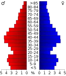 In the county, the population was spread out, with 25.20% under the age of 18, 7.10% from 18 to 24, 29.90% from 25 to 44, 23.40% from 45 to 64, and 14.40% who were 65 years of age or older. The median age was 38 years. For every 100 females, there were 101.60 males. For every 100 females age 18 and over, there were 100.40 males.
