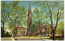 Columbus Hall stands on one of the most commanding spots in the city, directly opposite St. John's Church (also designed by O’Rourke) at White and Ridge Streets. It most notably housed the parish school, St. John's School, an institution that had been established 32 years earlier in 1862 .[2]