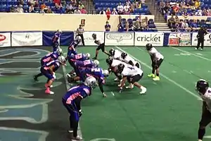 Columbus playing the Louisiana Swashbucklers on April 14, 2012. Note the pink numbers in support of cancer awareness.[12]