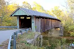 A number of reasons have been offered to explain the construction of covered bridges in Kentucky during the 19th century. The protection the cover provided against wood deterioration was likely most important. The yellow poplar used in the construction was thought - at the time - to be almost indestructible when shielded from the weather. The cover allowed timbered trusses and braces to season properly and kept water out of the joints, prolonging the life by seven to eight times that of an uncovered bridge. A second plausible reason is that the boarded sides and shingled roofs prevented horses from seeing the drop to the water below and becoming "spooked". "[2]