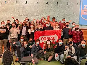 Comac is the student youth wing of the Belgian marxist political party, the Workers' Party of Belgium (WPB), (known as PTB-PVDA in Belgium). The movement is active in 11 places across Belgium, operating in different cities, universities, as well as hogescholen.[8] Comac's projects engage in political and symbolic movements, and it frequently hosts gatherings, protests, or other actions. The organization is bilingual, with Flemish and Walloon sections cooperating on a national level.[9]