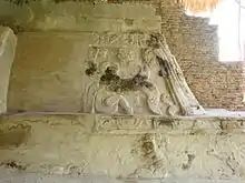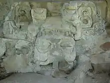 Well executed stucco decorations, once painted in bright colours, are another characteristic of the site.[18] As in Palenque, these refer to religious, mythological or ceremonial elements.[1]