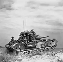 The first formation of the Co-belligerent Army was the I Motorized Grouping (Italian: I Raggruppamento Motorizzato) created on 27 November 1943 in San Pietro Vernotico near Brindisi. The units for the I Motorized Grouping were drawn from the 58th Infantry Division "Legnano" and 18th Infantry Division "Messina".[2] Some of the soldiers who joined the unit had managed to evade capture and internment by German forces.[3] The unit was composed of 295 officers and 5,387 men and was created to participate alongside the Allies against Germany in the Italian campaign. The unit was commanded by General Vincenzo Dapino, who led it during its first engagement in the Battle of San Pietro Infine in December of the same year. This action did much to remove the Allies' distrust of Italian soldiers fighting on their side.[4] The unit suffered heavy casualties and was judged to have performed satisfactorily.[5]