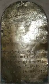 Monumental brass to Humphry Sydenham (1672–1710) of Combe, north wall of All Saints' Church, Dulverton
