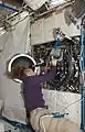 Sandra Magnus as she works with the Combustion Integrated Rack (CIR) in the U.S. Laboratory, Destiny, during maintenance.