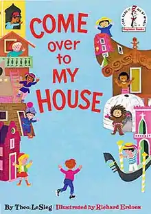 Come over to My House is a 1966 children's book written by Dr. Seuss and illustrated by Richard Erdoes. The name "Theo. LeSieg" was a pen name of Theodor Geisel, who is more commonly known by another pen name, Dr. Seuss.