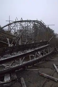 The coaster was originally designed to run with five car trains, but during the last years of its operation, they were shortened to four to allow the last carts to be used for spare parts. The roller coaster stood abandoned for 25 years until it was demolished on July 11, 2012.