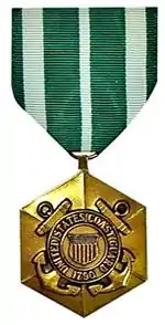 The U.S. Coast Guard awards a separate Coast Guard Commendation Medal, with a ribbon similar in design to that of its Navy and Marine Corps counterpart. Initially established as the Coast Guard Commendation Ribbon in 1947, it was redesignated as the Coast Guard Commendation Medal in 1959. Criteria for its award has paralleled that of the Navy and Marine Corps.[10]