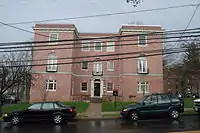 The success of the Wesleyan Commons Club inspired the founding of similar organizations at Dartmouth College, Middlebury College, and Norwich University. These four formed the National Federation of Commons Clubs in 1906, which would add thirteen additional members by 1918 as well as numerous non-aligned Commons Clubs on campuses throughout the United States and Canada.[3] Along with the increase in chapter memberships, went a great many improvements, following the easiest course in imitation of the older Greek-letter societies which were close at hand in every college, rather than in sticking to original principles or in making novel but difficult improvements. The Commons Clubs adopted, one after the other, most of the characteristics of the Greek-letter fraternities, not, however, without a fight at every adoption by the sterner, more democratic element in every chapter. The innovations consisted of yearly conventions, an annual magazine, initiation and installation rituals, robes, secret hand grips, badges, pennants, private fraternity houses, alumni organizations, and the like.