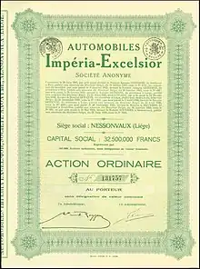 Compagnie Nationale Excelsior, more simply known as Excelsior, was a Belgian car manufacturer established by Arthus de Coninck in Brussels in 1903. The company first started to manufacture cars in 1904.