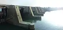 - 19 dams: Génissiat, Seyssel, Motz, Lavours, Champagneux, Villebois, Pierre-Bénite, Reventin-Vaugris, Saint-Pierre-de-Bœuf, Arras-sur-Rhône, Bourg-lès-Valence, Charmes, Le Pouzin, Châteauneuf-du-Rhône, Bollène, Caderousse, Avignon, Sauveterre and Beaucaire