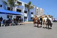 In the city the contests of Paso Horses are organized by the Association of Breeders and Owners of Paso Horses in La Libertad, the best known and most important are The National Competition Paso Horses being done within the framework of the International Spring Festival made between September and October[3] and in the Festival and International Competition of Marinera in January.[4] Peruvian government has declared this kind of horses as Nation's cultural heritage.[5]