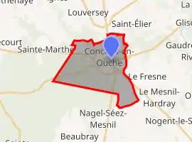It is located by the Rouloir river, southwest of Évreux in the Normandy region. The town is located on a plateau known as the Pays d'Ouche.