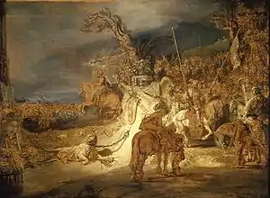 Concord of the State is a 1642 painting by Rembrandt, now in the Museum Boijmans Van Beuningen in Rotterdam. It is signed and dated "REMBRANDT F. 164(.)". In terms of style and theme it is linked to The Night Watch - both paintings include symbolism and allegories of the Dutch Republic and Amsterdam.